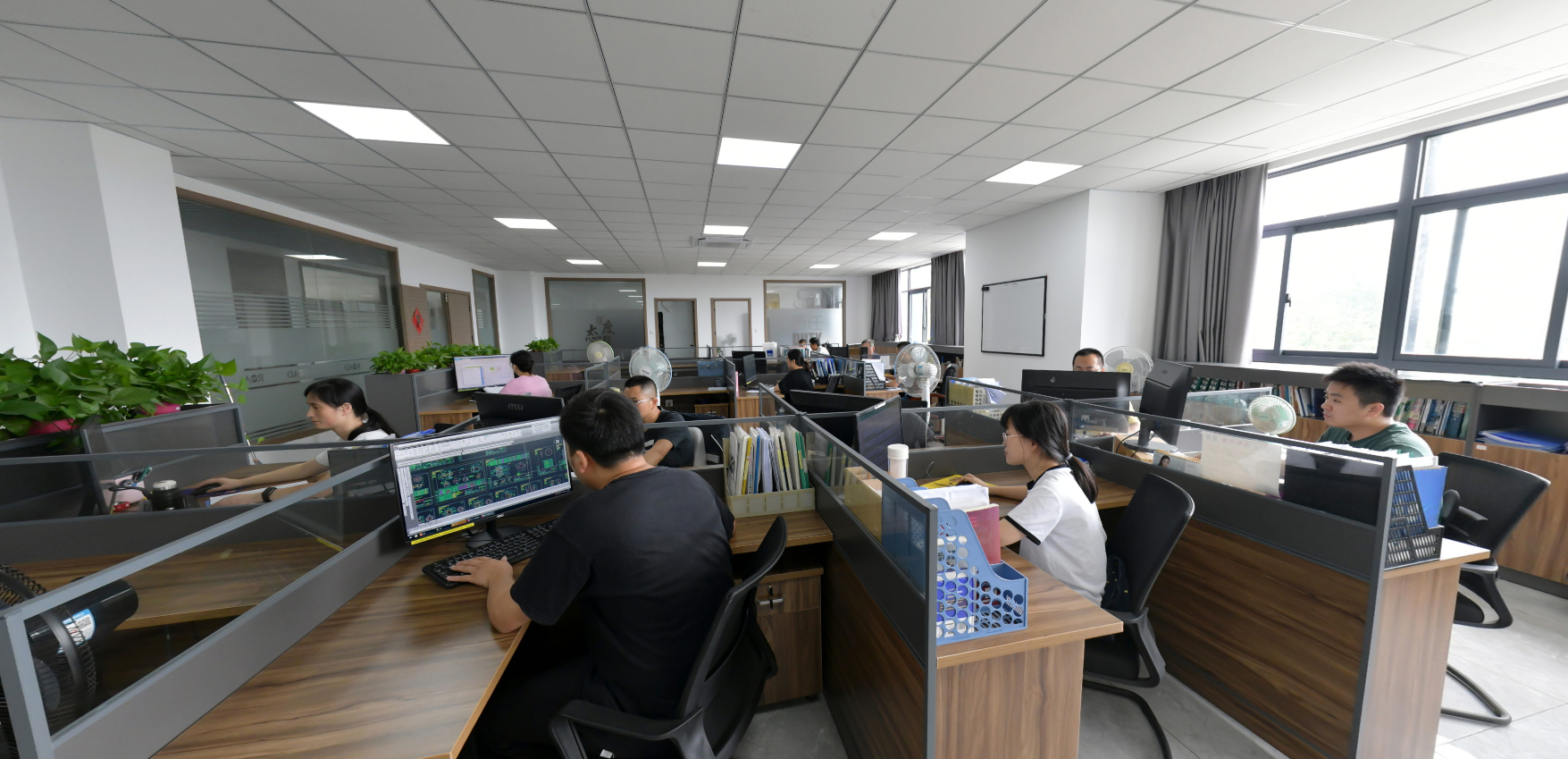 建筑面积约1500平方米,内部设置了公司销售、技术、质量、采购、制造、行政等管理部门及会议室、档案室。配备了计算机、传真机、复印机、内部局域网、程控电话等现代化办公设施。